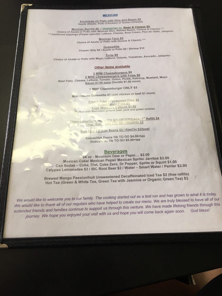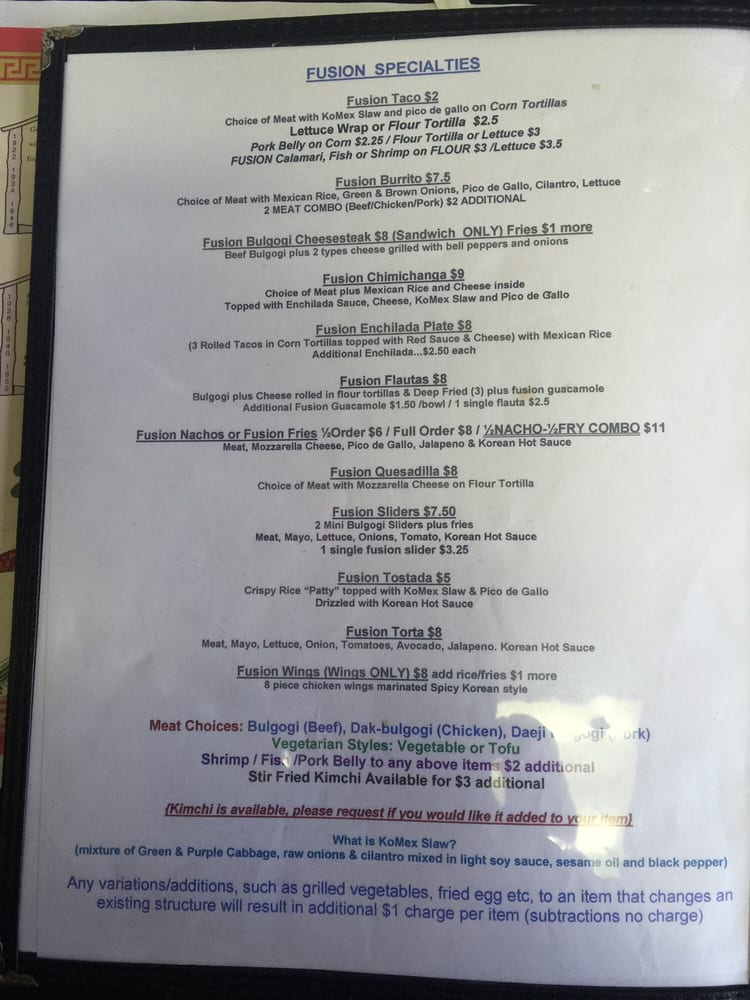 Welcome to KoMex Fusion, a culinary gem where American, Mexican, and Korean flavors collide in delightful harmony. Located at 633 N Decatur Blvd in Las Vegas, this casual yet vibrant eatery invites you to savor unique dishes crafted with passion.